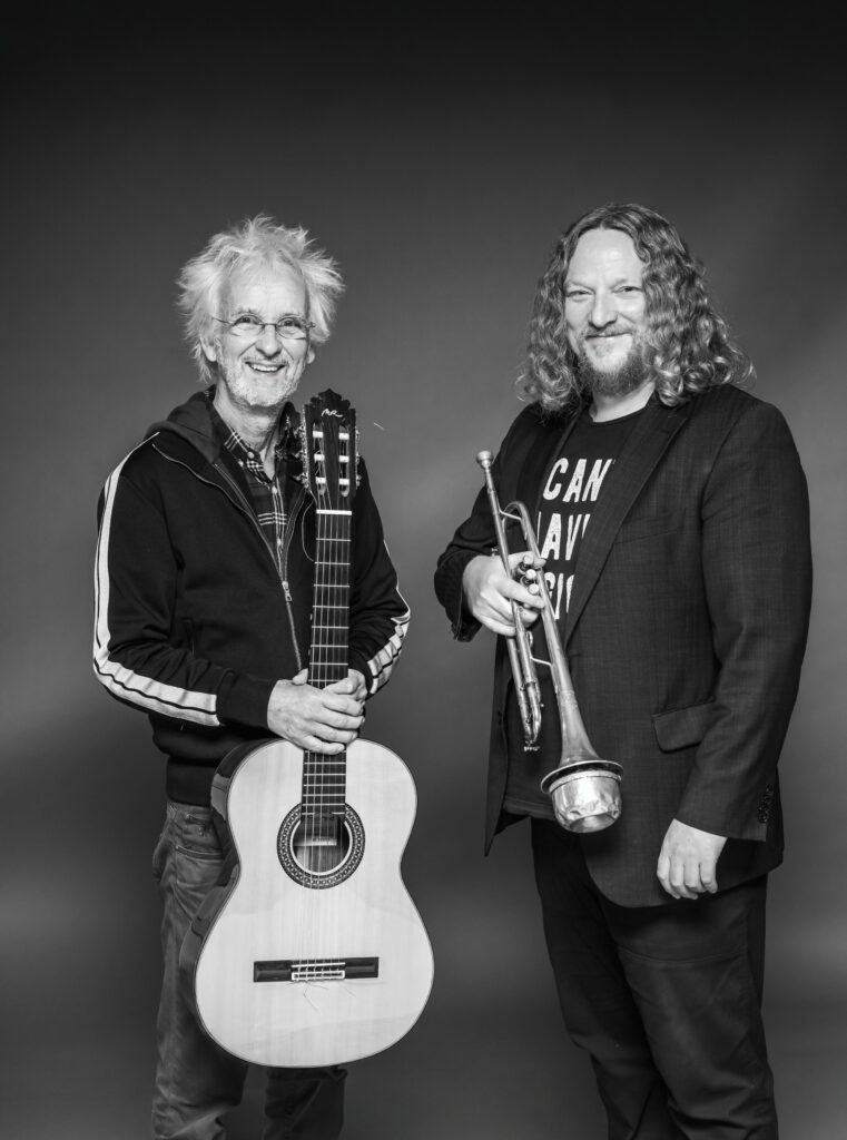 Tony & Mattis er professor emeritus Tony Valberg (Fakultet for kunstfag, UiA) på gitar, og Bjørn Mattis Eng på trompet.